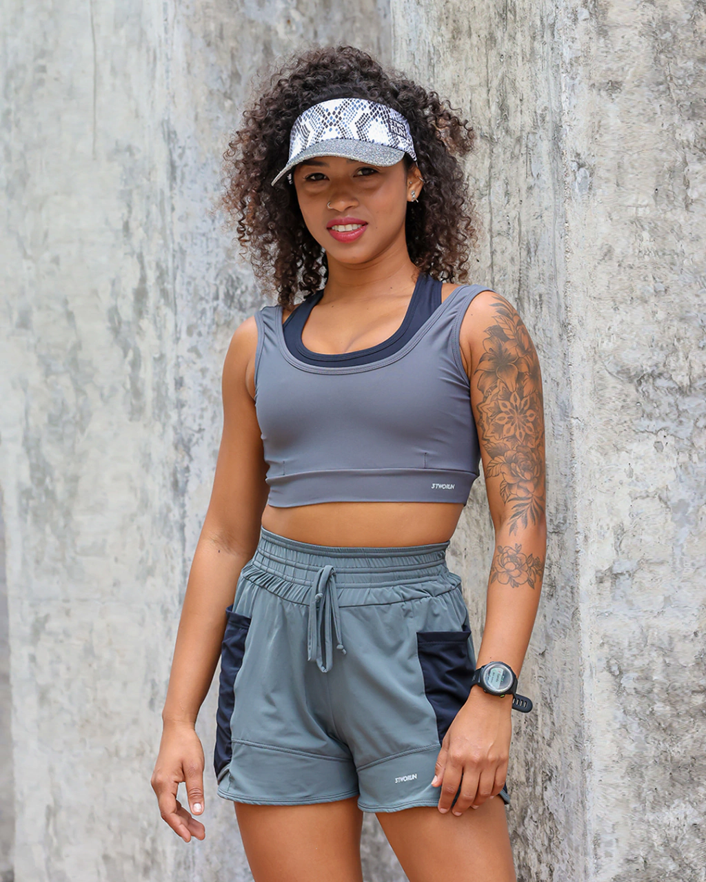 Short duplo : Um short interno com compressão com um bolso e short de tecido fluido com dois bolsos por fora , ideal para prática da corrida. Tem proteção Uv+50, alta absorção de suor, além de ser ultraleve e resiste.