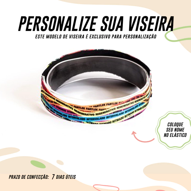 As nossas viseiras são confeccionadas com tecido de microfibra, de secagem rápida, com a parte interna atoalhada, a aba é feita com material expandido que não quebra e um elástico atrás de tamanho único que não machuca o seu cabelo.