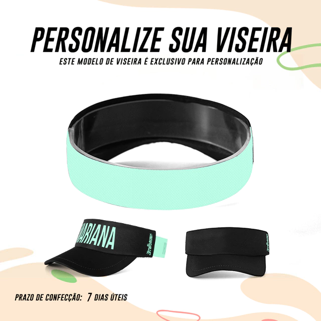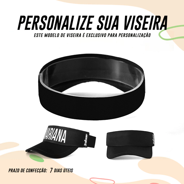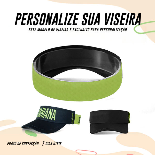 Agora você pode criar a sua viseira com o seu nome descrito na FRENTE e nas COSTAS.