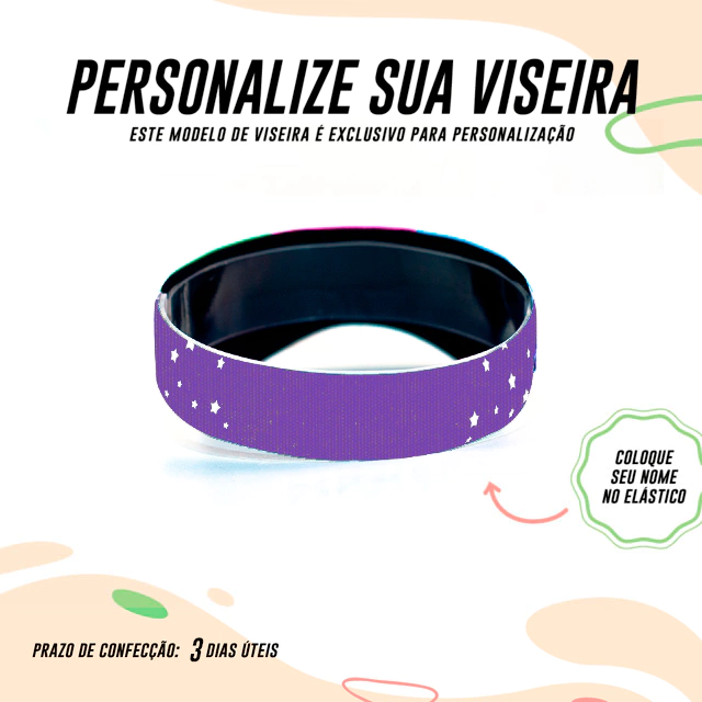 As nossas viseiras são confeccionadas com tecido de microfibra, de secagem rápida, com a parte interna atoalhada, a aba é feita com material expandido que não quebra e um elástico atrás de tamanho único que não machuca o seu cabelo.